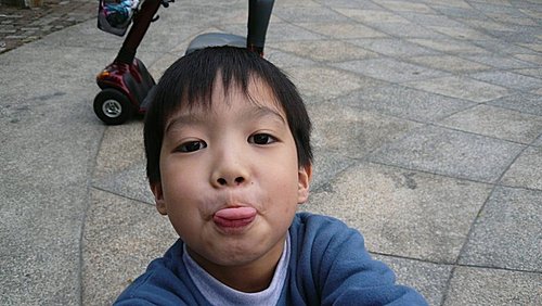 他說:「拔拔,為什麼阿姨要把大便圖在那個人腳上」,