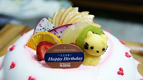 圖-妹搶第一個把蛋糕上的 Hello Kitty 吃掉