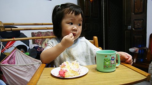 圖-坐在專屬的餐桌椅上吃蛋糕