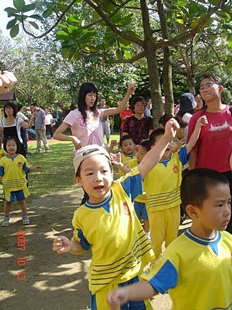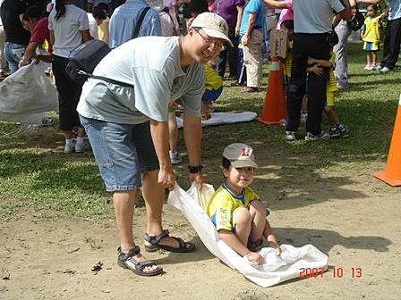 周末時阿Ray哥哥學校舉辦運動會,前一晚我們就早早趕他去睡覺,深怕他到時爬不起來,結果他還是一樣拖到很晚才肯睡,還好早上還是有爬起來,只是動作太慢了,所以還是免不了有挨媽媽唸了一頓,用完早餐後,我們就到學校集合,此時已經有很多的家長已經到了,活動很快的展開,只是當天的天氣實在是太好了,好到烈日高照,把我們大家曬的是頭昏眼花的,只好一直的補充水份,校方也還算不錯,有供應礦泉水給大家,不然在烈日曝曬下,沒多久就會中暑了,再開始各項競賽前,校方先帶著所有的小朋友及家長來段暖身操,好久沒這樣活動一下,舒展一下筋骨,只見每位家長跟小朋友都很賣力的跳著,暖身操結束後就大、中、小班各自帶開進行比賽,這群小朋友的比賽根本就沒有分什麼名次,主要就是要大家玩得開心,說穿了就是要家長也一起的融入,一起享受難得的親子同樂,所有的活動結束後,像方還發給每一個小朋友一份餐點做為獎勵,很快的我們就把這份餐點給吃掉了,算是犒賞自己不錯的表現,有全程參予到結束,沒有半途溜了。