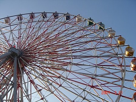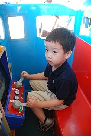 逛完了IEKA後,當然就要在去一下夢時代走走,不然大老遠跑到了高雄,卻沒到現在相當高雄最ㄏㄤ的景點--統一夢時代廣場的話,不就可惜了,據載我們的運匠阿伯表示,自從夢時代開幕後,附近新光三越及 Sogo 商圈的人潮全被夢時代給吸引過去了,這不禁讓我回想起當初台中新光三越開幕後,靠近市區的一些商圈的人潮也被吸引過去,畢竟現在的人喜歡新奇的感覺,而且相對來說,新開幕的 shopping mall 一般停車會比較便利,好啦,回到正題,夢時代廣場是由統一企業打造,裡面就跟一般的百貨公司一樣,可說各式精品都有,唯一比較特別的就是那可以媲美台北美麗華的摩天輪,這才是我們想要去夢時代的目的,就是希望可以在頂樓搭上摩天輪,好好的欣賞一下高雄河港的景色,可惜的是,由於是假日,人實在是太多了,所以最後還是沒有嘗試到,只好等下次有機會,利用非假日的時候去坐看看了,不過此行對阿 Ray 來說,還是有收穫的,因為買到他最想要的變型金剛,跟坐到他喜歡的湯馬仕小火車,所以對他來說還是不錯啦。